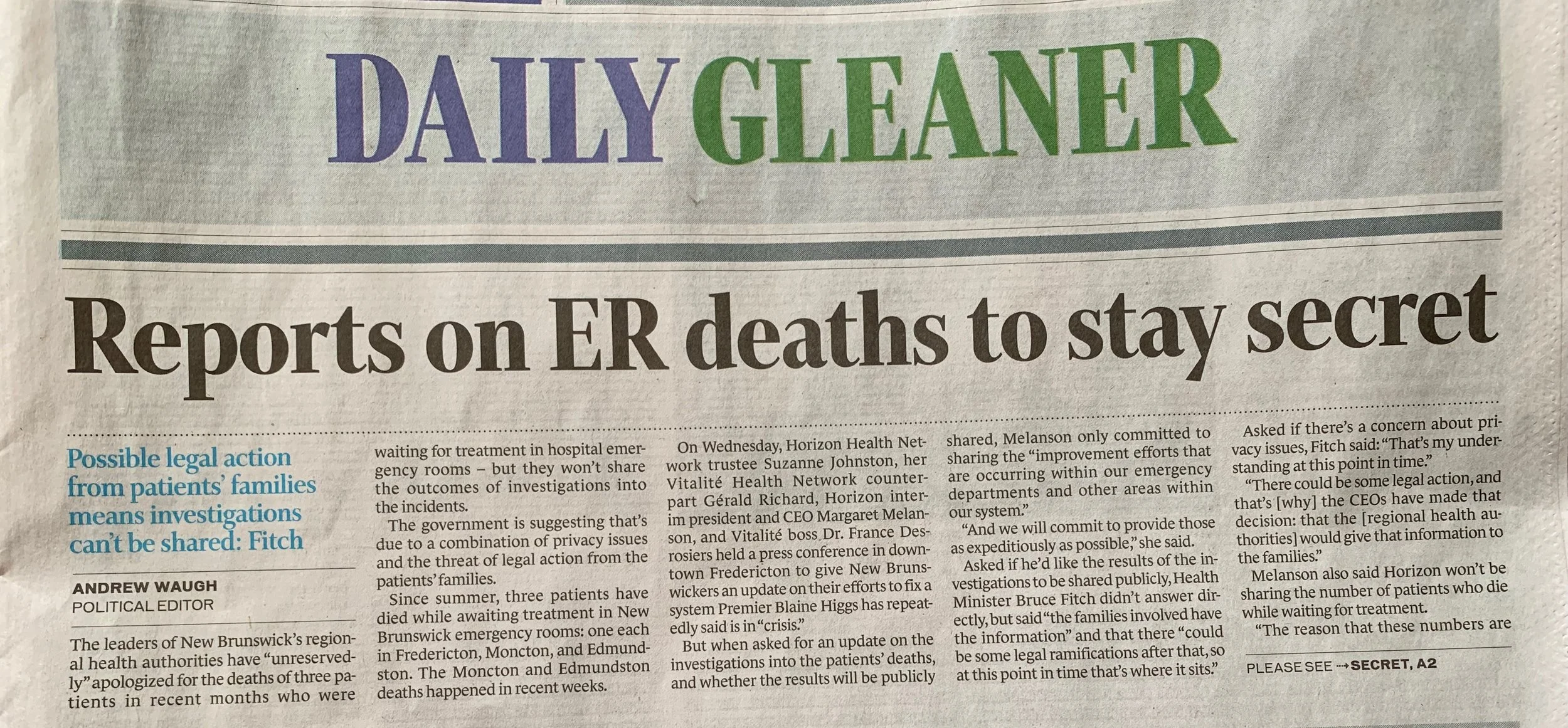 It shouldn’t come as a surprise to those in charge of the health authorities that New Brunswickers aren’t stupid, that we understand this reality, and giving us the numbers of how many will not burst any imaginary bubble that we had no idea everyone who goes to the ER doesn’t have a positive outcome.